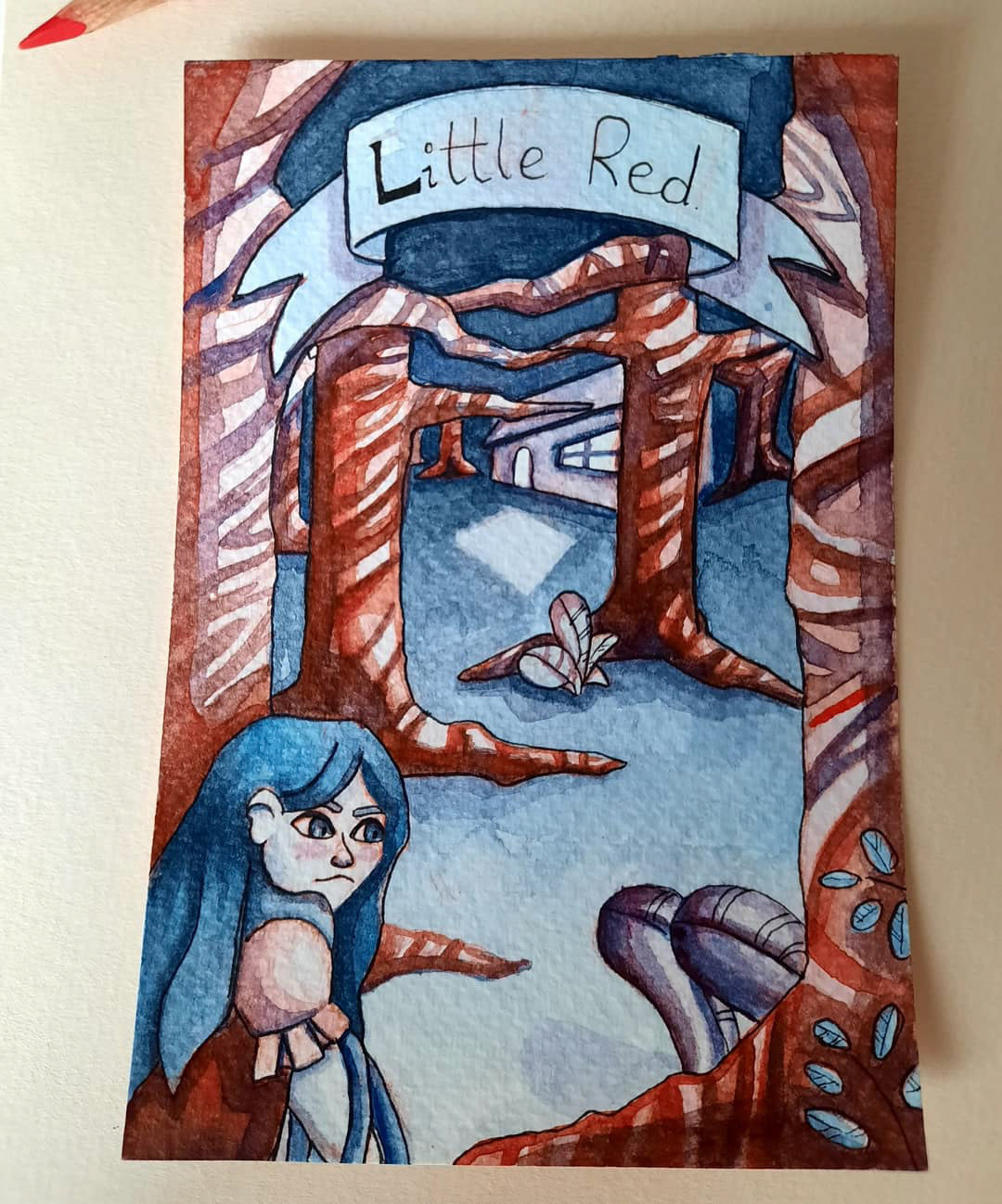 A personal watercolour Illustration I created based of the 'Little Red Riding Hood' story. I was making a comic page based of the illustration.